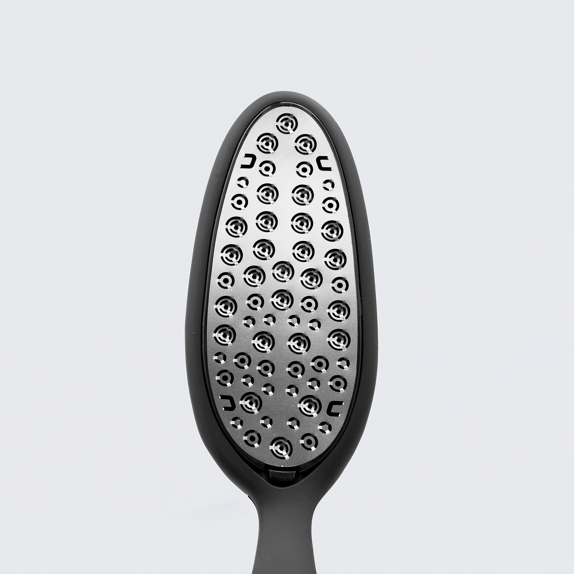 A comfortable and light soft touch handle, along with it's unique concave high-quality stainless steel inlay, this file only removes rough skin, ensuring that healthy skin is not damaged.